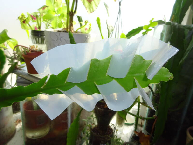 Geprepareerde bladstengel , om op later moment meerdere mini-stekken van te laten wortelen en groeien.