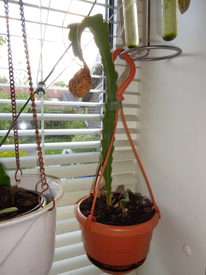Een stek van Quatamalmensis? met verdorde zaadbol. Heb alsnog getracht te zaaien, maar kwam niks van terecht.